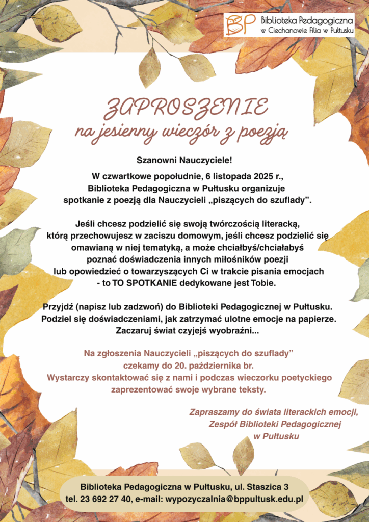 Jesienny wieczór z poezją dla Nauczycieli – zaproszenie