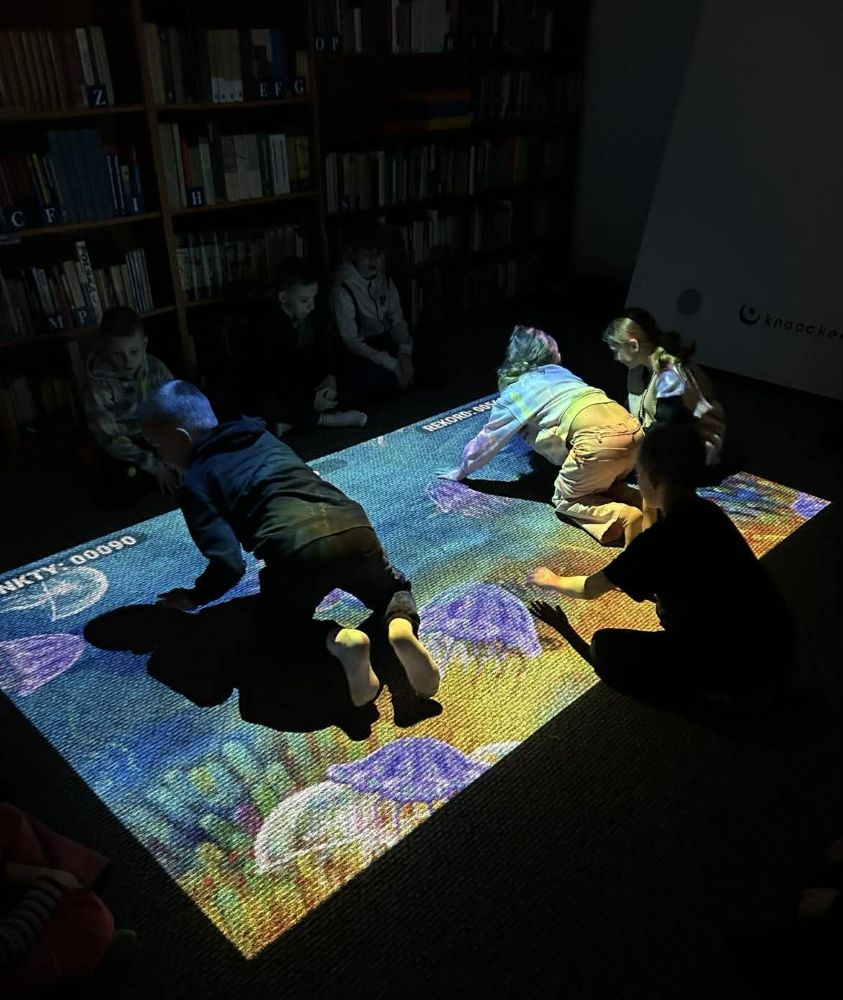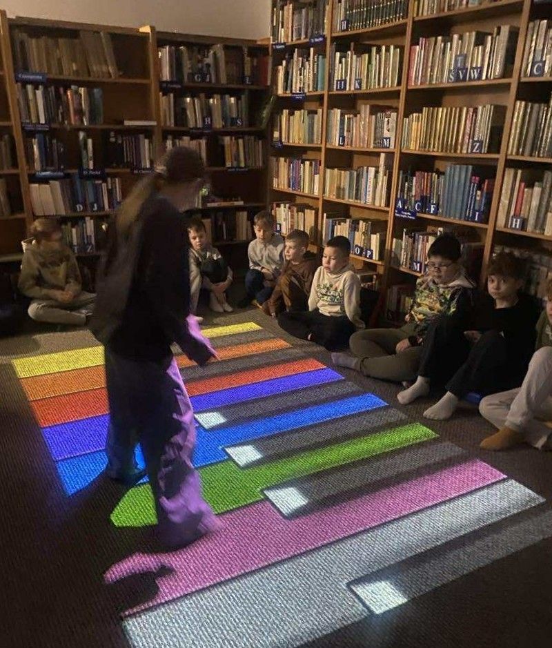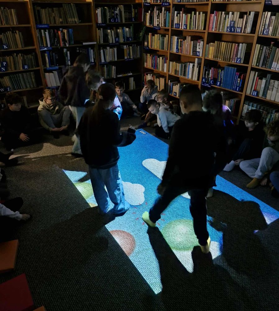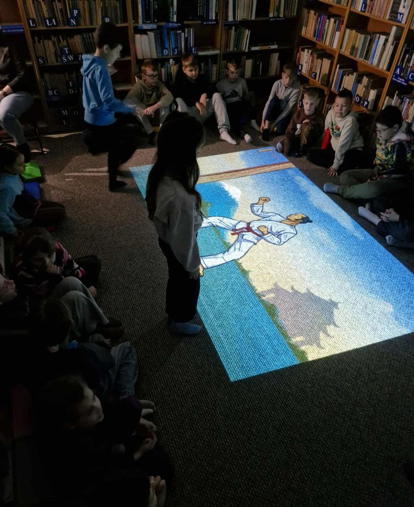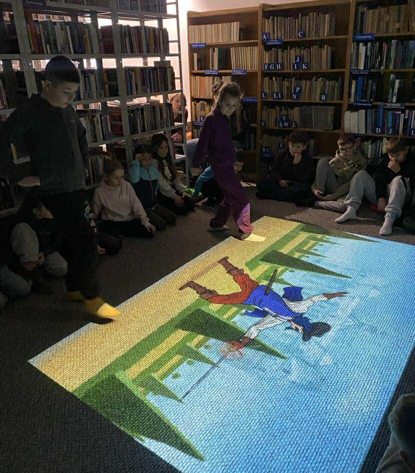 Jednak najwięcej radości uczestnicy zimowych spotkań w bibliotece czerpali z gier i zabaw edukacyjnych na Magicznym Dywanie i przy Magicznej Ścianie, co oprócz radości i satysfakcji wyzwalało w dzieciach chęć sprawdzenia swoich umiejętności zarówno fizycznych, jak i wiedzowych, na tle całej grupy.