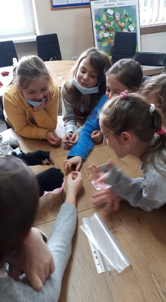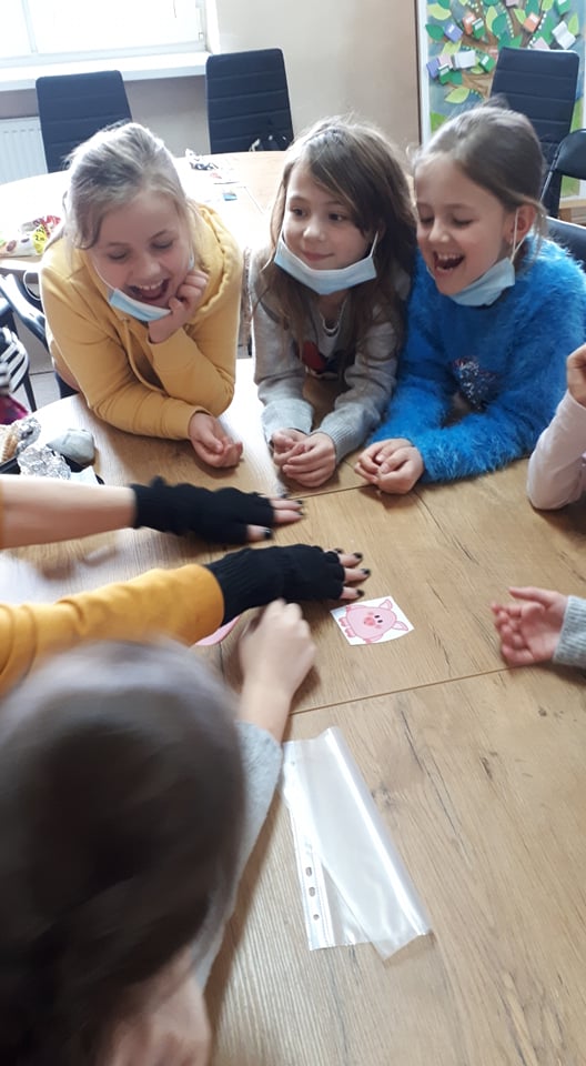 Podczas pierwszej części spotkania uczniowie uczestniczyli w szeregu gier i zabaw wspierających rozwój. W oparciu o grę planszową „Cztery pory roku”, dopasowywali obrazki, czym ćwiczyli pamięć i spostrzegawczość. Uczestnicy z wielkim zaangażowaniem drużynowo grali w grę „5 sekund Junior”, dzięki której uczyli się zdrowej rywalizacji, formułowania wypowiedzi oraz wzbogacili swoją wiedzę