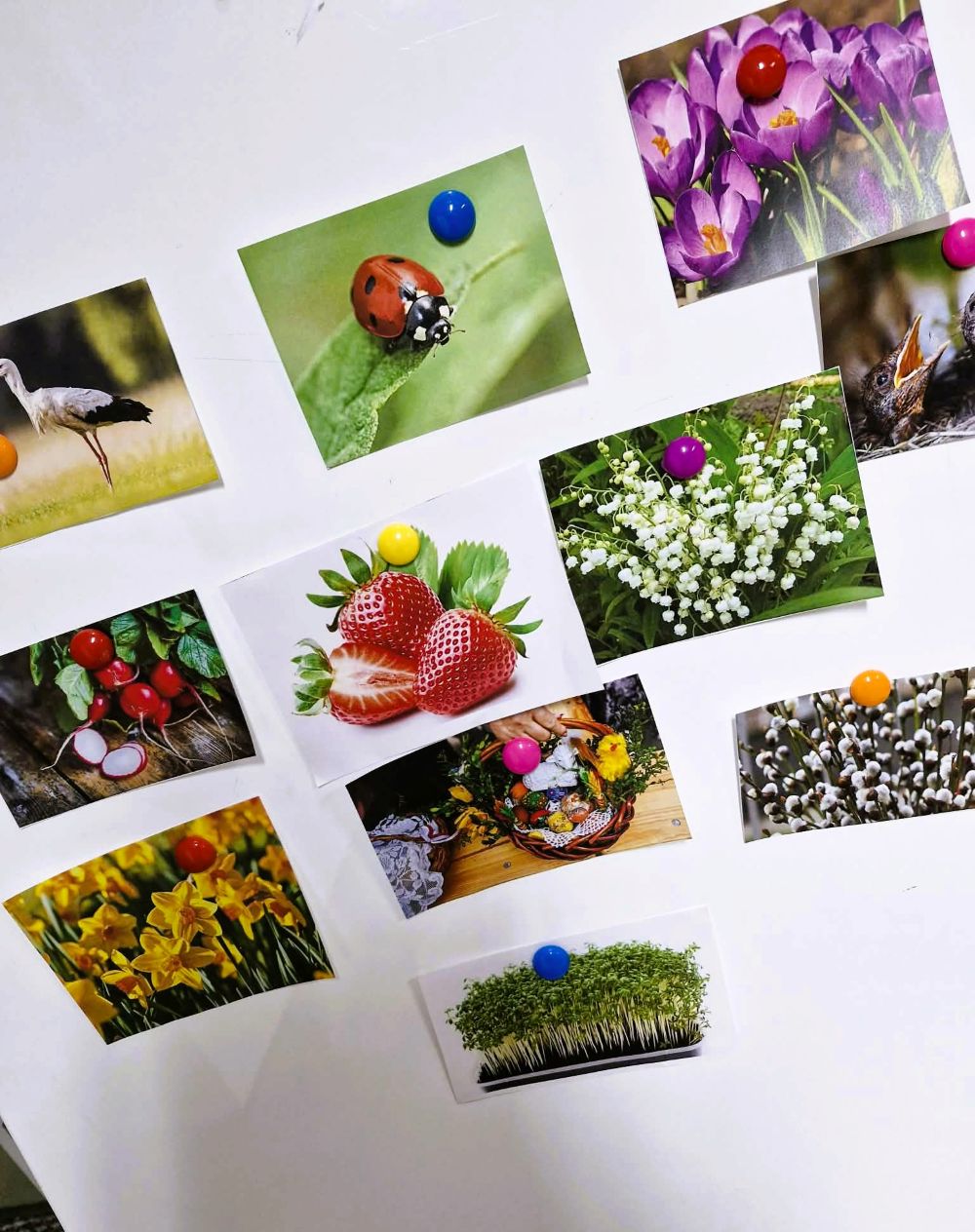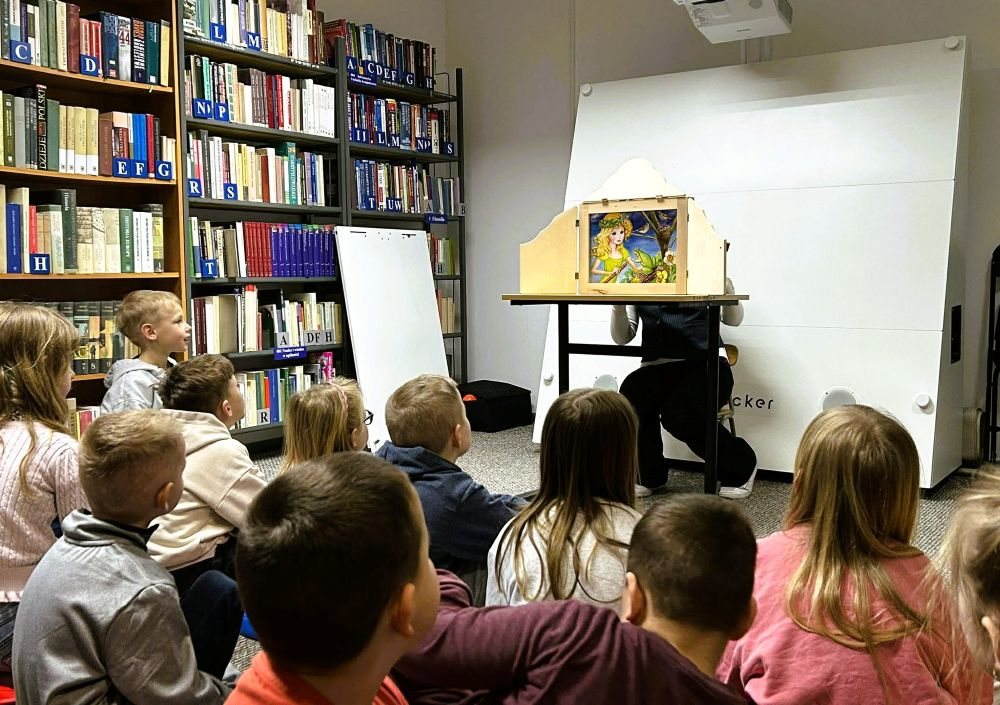 Podczas zajęć dzieci z dużym zainteresowaniem wysłuchały opowieści B. i T. Piątkowskich pt. „Pory roku, czyli Rok i jego cztery córki”, zaprezentowanej w formie teatrzyku kamishibai. Historia w przystępny sposób przybliżyła najmłodszym zmiany zachodzące w przyrodzie w kolejnych porach roku, ze szczególnym uwzględnieniem wiosennych przemian.