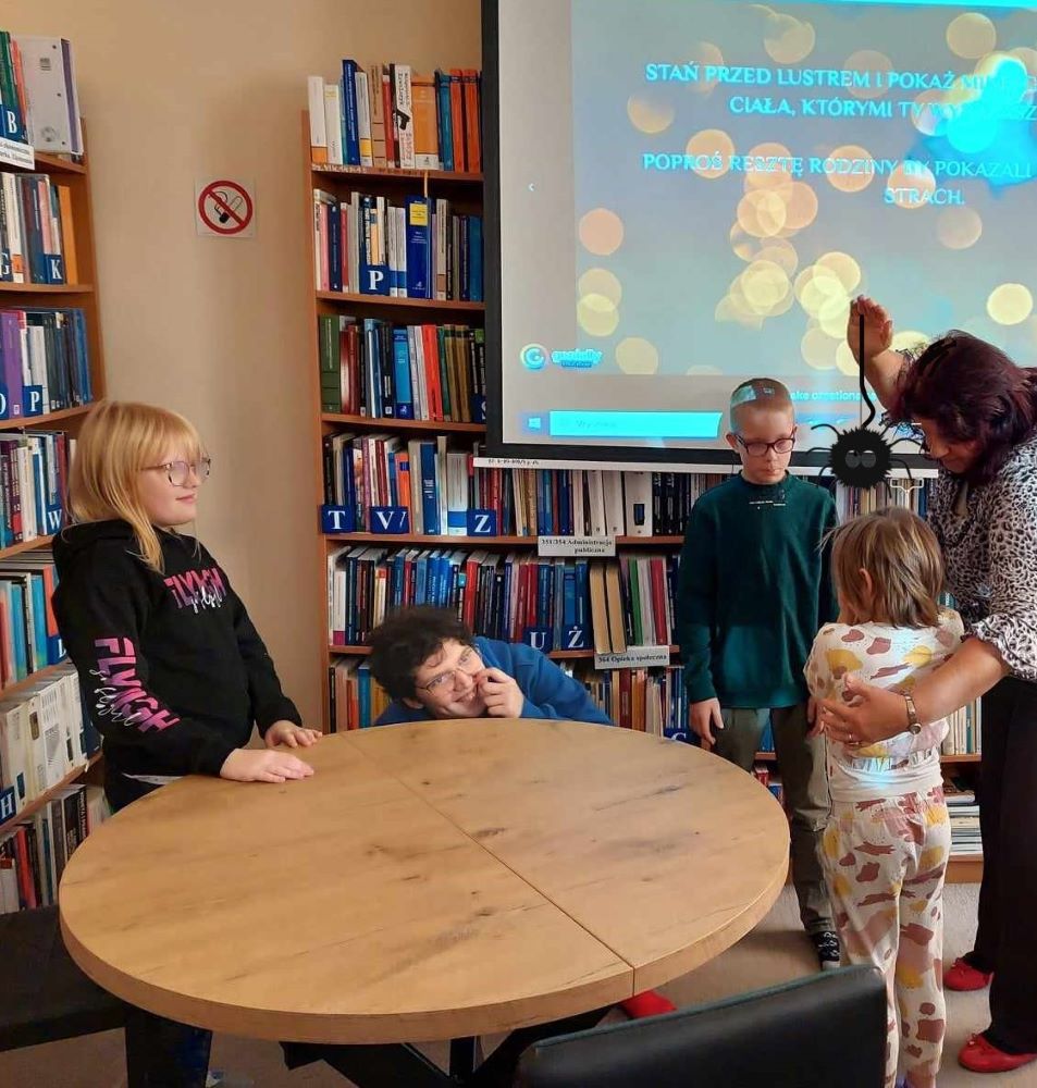 W kontekście Nocy Bibliotek, zajęcia „Pokonujemy lęk i strach” miały na celu nie tylko wsparcie uczniów w radzeniu sobie z ich emocjami, ale także podkreślenie roli bibliotek jako miejsc, gdzie można znaleźć pomoc, wsparcie i wiedzę. Uczniowie, korzystając z multimedialnej prezentacji https://tiny.pl/1d_zzs6x przygotowanej przez Dorotę Karkowską, koordynatorkę wydarzenia, poznali różne źródła lęku, strachu oraz techniki ich przezwyciężania.