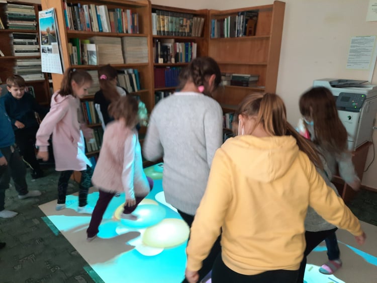 ze Szkoły Podstawowej w Gzowie wraz z nauczycielami. Dorota Karkowska nauczyciel bibliotekarz rozpoczęła spotkanie od powitania przybyłych i krótkiej historii biblioteki. Omówiła jej zbiory, zasady wypożyczania oraz pokazała filmik o działalności placówki zarówno edukacyjnej jak i kulturalnej. Następnym punktem spotkania była tematyka ekologiczna oraz zasady segregacji śmieci. Uczniowie dowiedzieli się, jak dbać o środowisko naturalne. Na przykładzie opowiadania Małgorzaty Strzałkowskiej pochodzącego z książki „Teatrzyki z morałem, czyli Rady nie od parady”, poznali niszczycielską działalność człowieka i życie zwierząt w zanieczyszczonym środowisku. Odpowiadając na pytania prowadzącej dzieci wykazały się dużą wiedzą, świadomością i postawą ekologiczną. Dla ratowania Ziemi ograniczają konsumpcję, wytwarzanie dużej ilości odpadów, oszczędzają energie i wodę oraz dbają o jakość powietrza. Po dawce niemałej ilości informacji przyszedł czas na „Magiczny dywan”. Uczniowie wykonywali zadania ucząc się i bawiąc. Na uwagę i pochwałę zasługuje umiejętność współpracy ze sobą, refleks, zwinność, a także dobra orientacja przestrzenna i kreatywność. Zabawy na Magicznym Dywanie sprawiły Wszystkim uczestnikom spotkania mnóstwo radości.