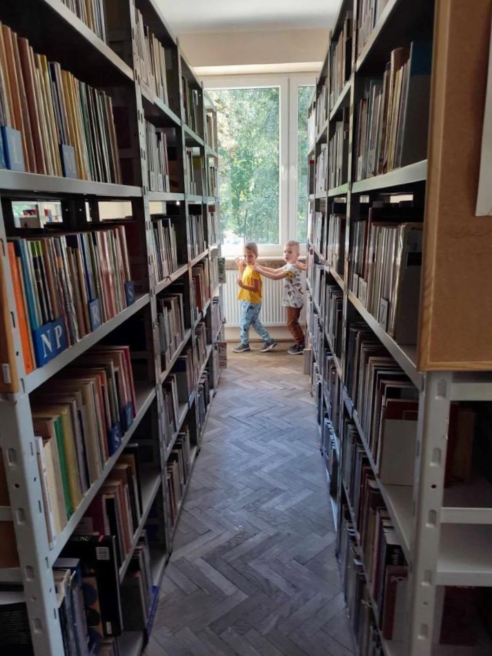 i pokonując napotkane „przeszkody” zwiedziły wypożyczalnię, gdzie zobaczyły ogrom książek na półkach.