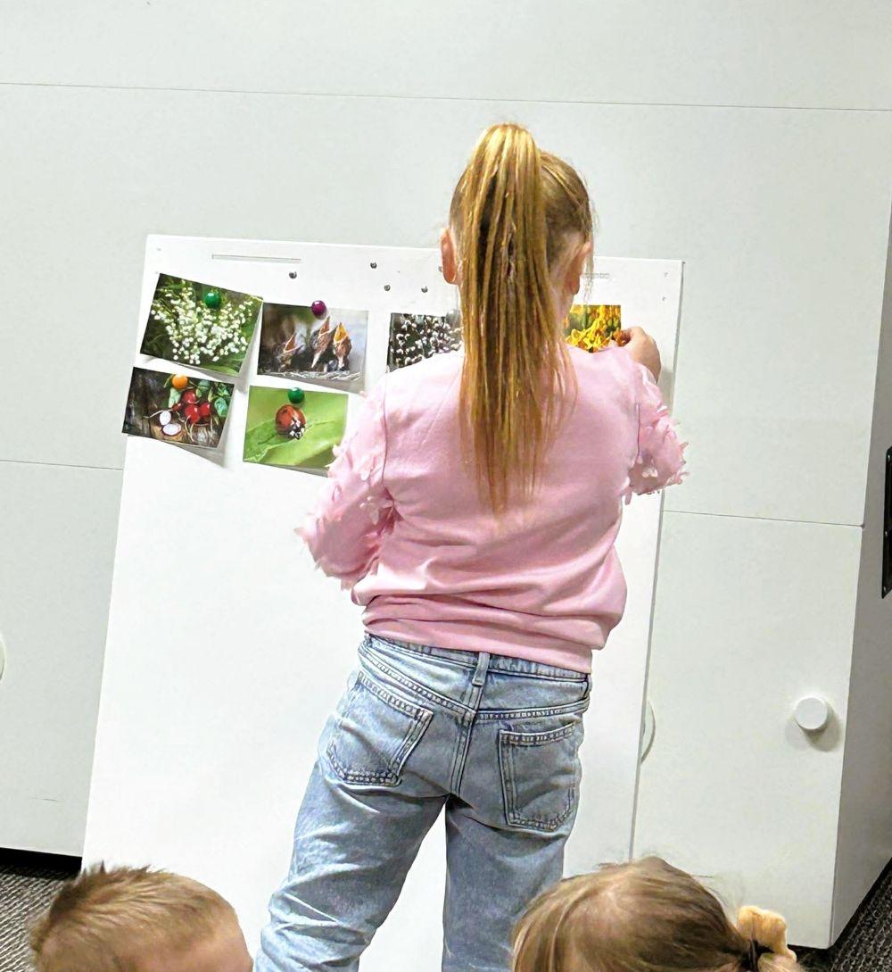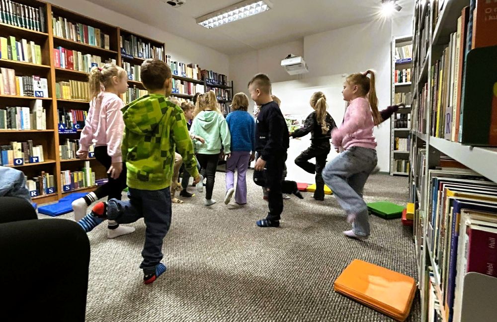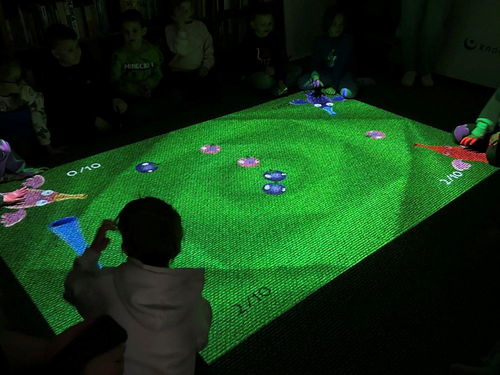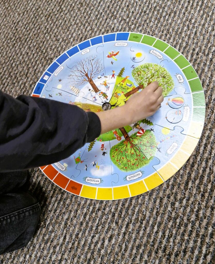Uczniowie mieli również okazję pracować z książką P. Zarawskiej pt. „Wiosna w świecie przyrody”, dzięki której poznawali wiosenne kwiaty oraz, wykorzystując kody QR, rozpoznawali odgłosy ptaków charakterystycznych dla tej pory roku. Zajęcia rozwijały umiejętność obserwacji, kojarzenia i aktywnego słuchania. Nie zabrakło także zagadek, układanek oraz puzzli „Rok na okrągło”, które pomogły utrwalić wiedzę o miesiącach i porach roku w formie zabawy. Aby jeszcze lepiej przygotować dzieci do uważnego dostrzegania oznak wiosny, uczestnicy wykonywali ćwiczenia rozwijające koncentrację i uważność z kart „Trening mindfulness. Uważność dla dzieci” z serii Kapitan Nauka. Na zakończenie spotkania dzieci wzięły udział w interaktywnych zabawach edukacyjnych na Magicznym Dywanie, które dostarczyły wiele radości, a jednocześnie wspierały rozwój ruchowy i poznawczy. Zajęcia miały na celu rozwijanie ciekawości świata, kształtowanie postaw proekologicznych oraz wspieranie kompetencji poznawczych i społecznych dzieci poprzez naukę połączoną z zabawą.