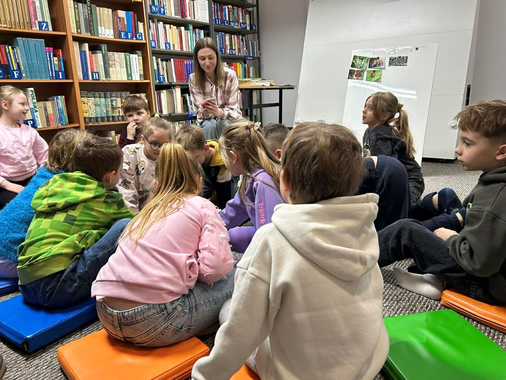 23 marca 2026 r. mieliśmy przyjemność gościć w naszej bibliotece uczniów klasy „0” z Publicznej Szkoły Podstawowej nr 3 w Pułtusku. Spotkanie zostało zorganizowane z okazji Pierwszego Dnia Wiosny i miało charakter edukacyjno–integracyjny. Podczas zajęć pt. „Uważni na wiosnę” dzieci wysłuchały bajki autorstwa B. i T. Piątkowskich pt. „Pory roku, czyli Rok i jego cztery córki”, zaprezentowanej w formie teatrzyku kamishibai. Opowieść w przystępny sposób przybliżyła najmłodszym zmiany zachodzące w przyrodzie w kolejnych porach roku.